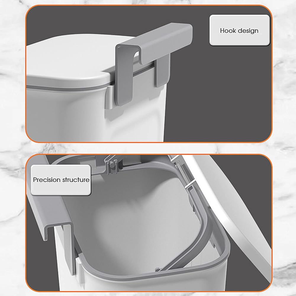 - NEW DESIGN】The trash can hanging above the cabinet door saves your kitchen space without having to walk N-EXT to the big trash can. The new sealing cover design effectively reduces kitchen odor.