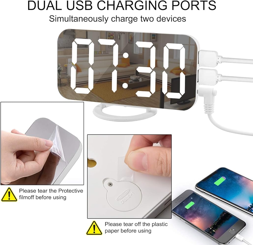 Snooze, Auto Dimmable, Mirror Surface, Charging Port
